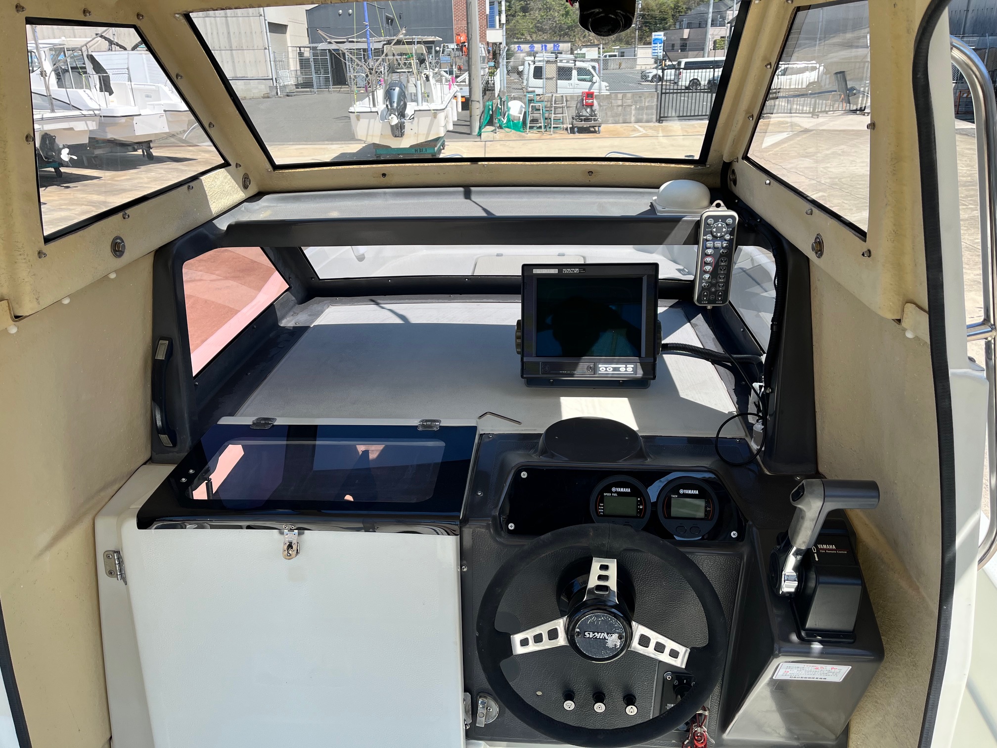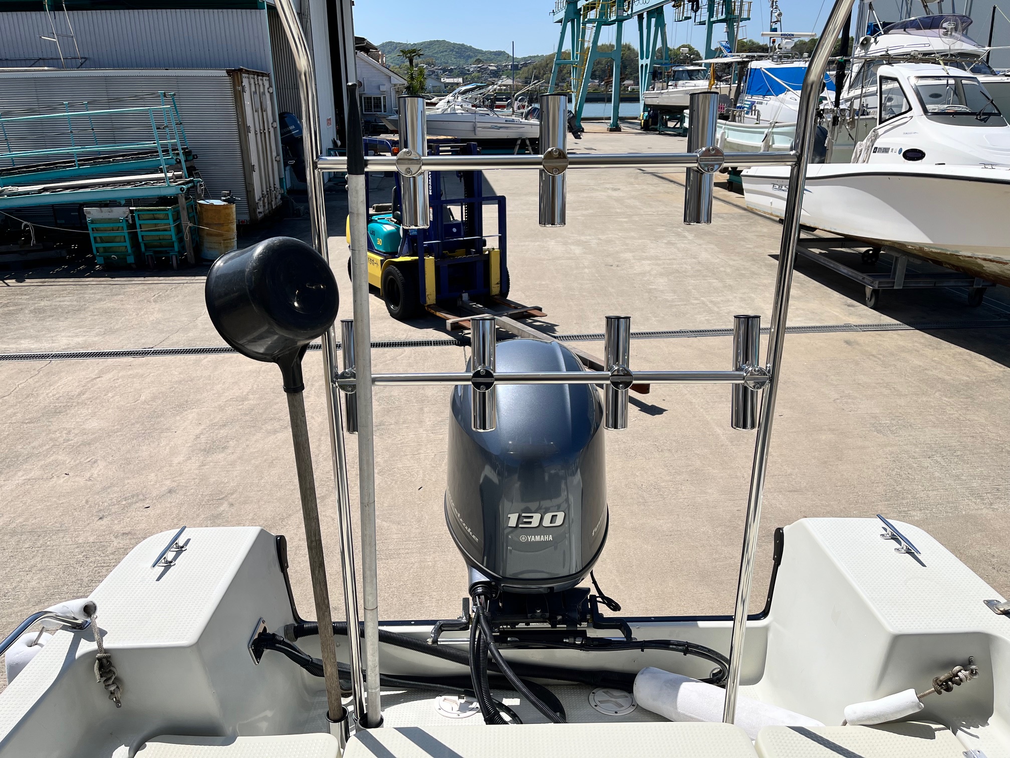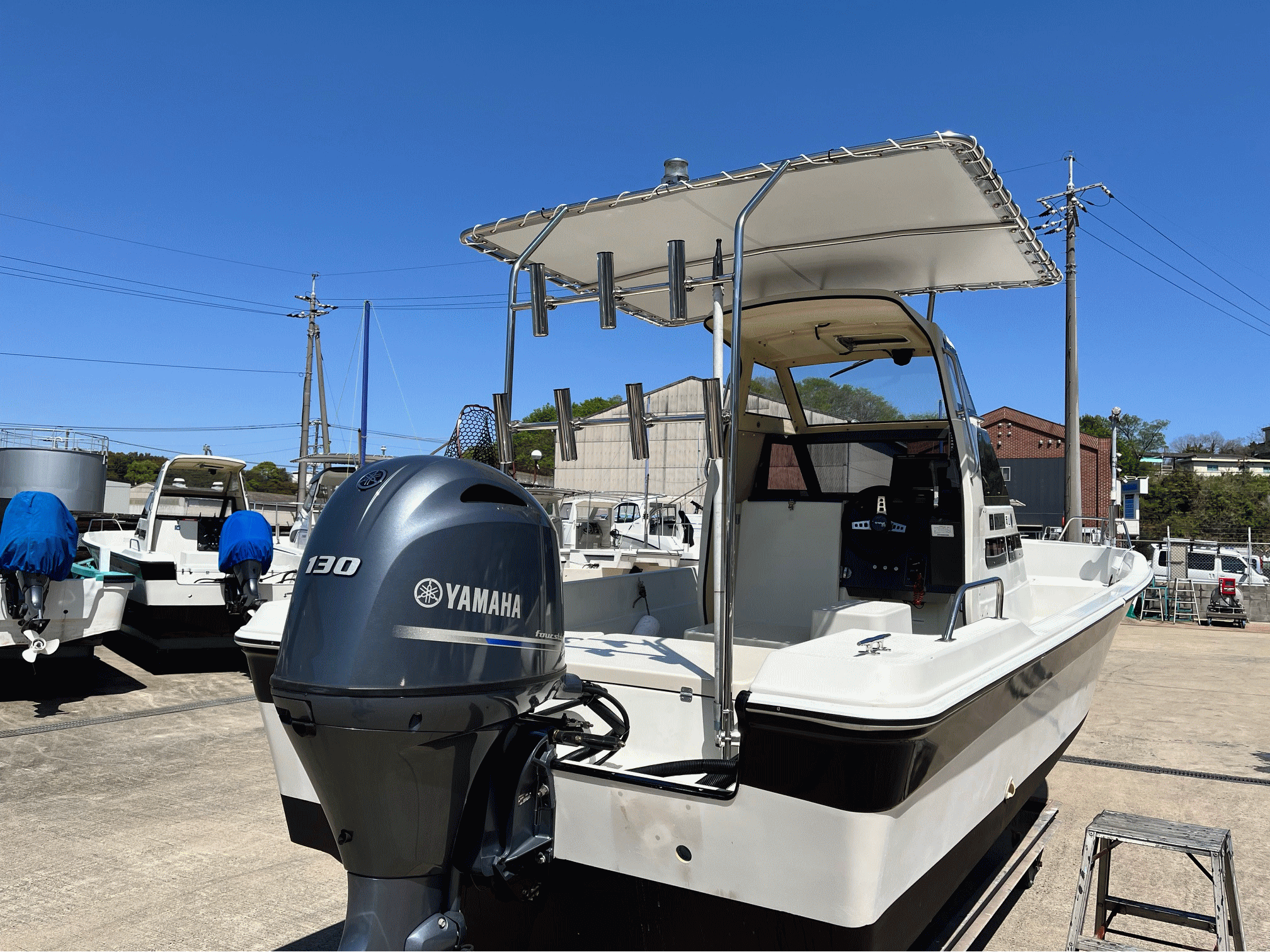 大型GPS魚探、オーニングテント、ロッドホルダー、マリントイレ付き